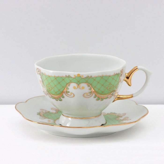 Сервиз фарфоровый чайный Доляна «Вивьен», 12 предметов: 6 чашек 200 мл, 6 блюдец d=15 см, цвет МИКС