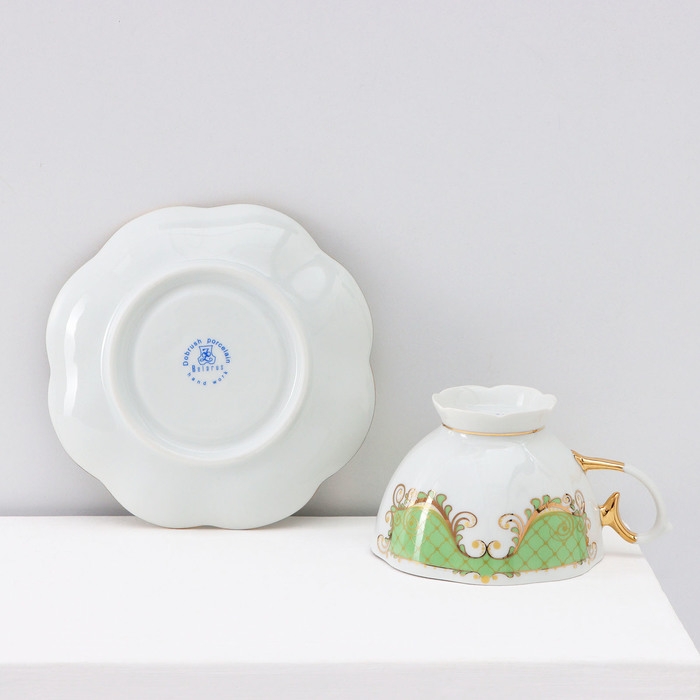 Сервиз кофейный фарфоровый «Симфония», 15 предметов: кофейник 800 мл, сахарница 400 мл, сливочник 180 мл, чашка кофейная 110 мл, блюдце d=12 см
