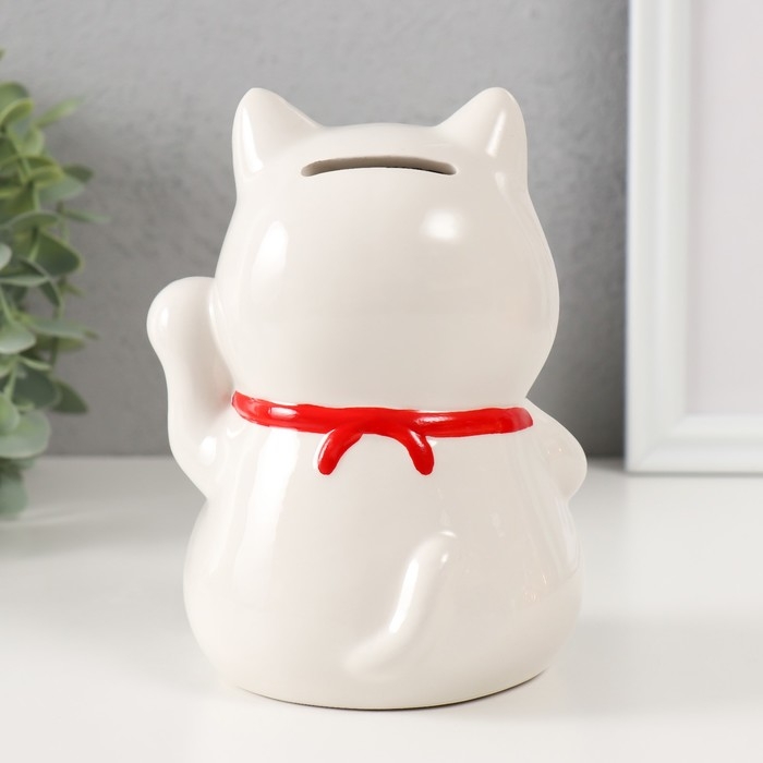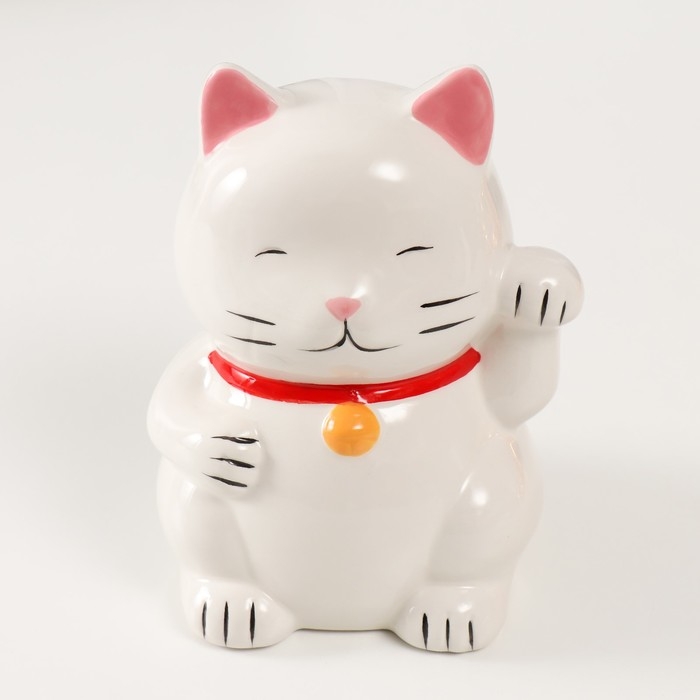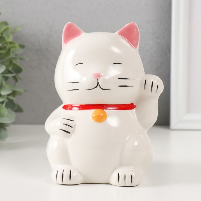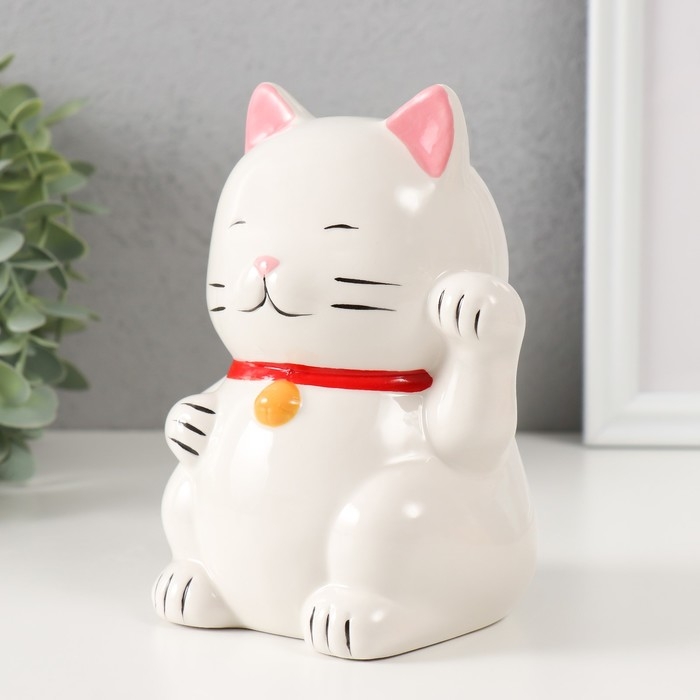 Копилка керамика "Белый кот Манэки-нэко" 10х10х14,5 см