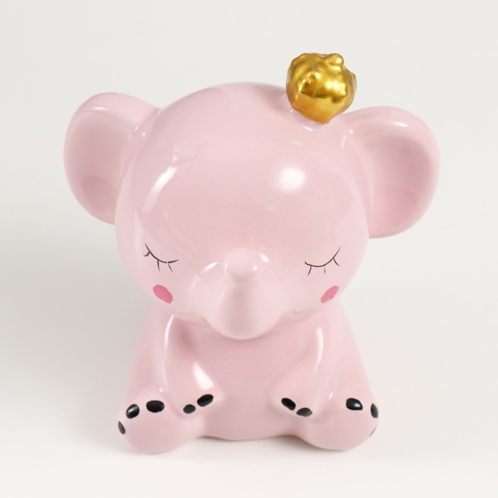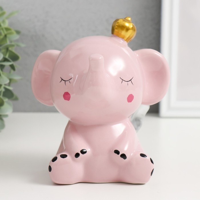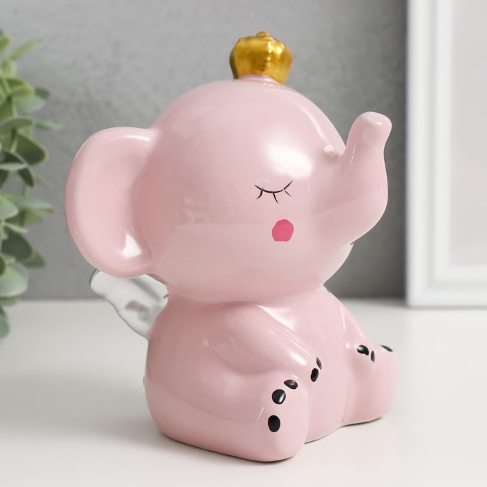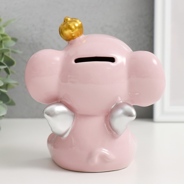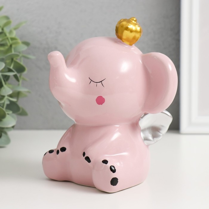 Копилка керамика "Розовый слонёнок с крыльями в короне" 12,8х9,5х14 см