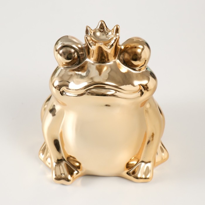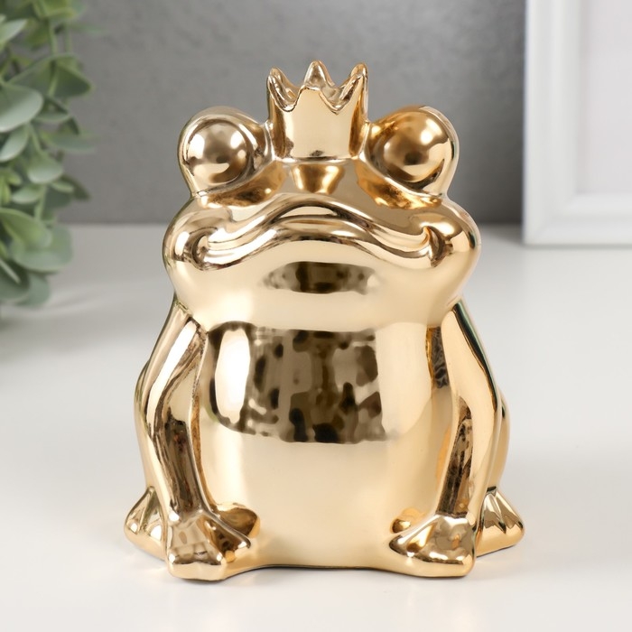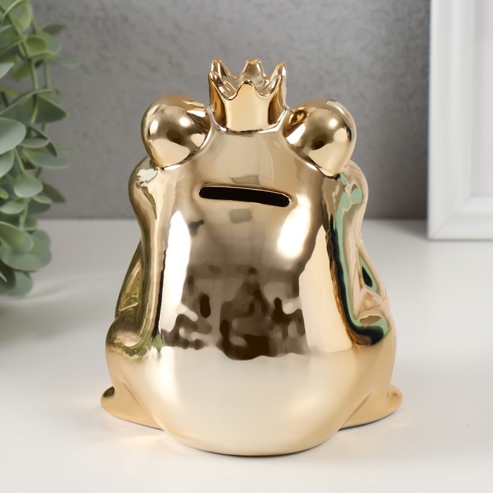 Копилка керамика "Золотая лягушка в короне" 12х10,5х15 см