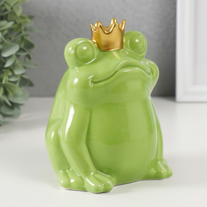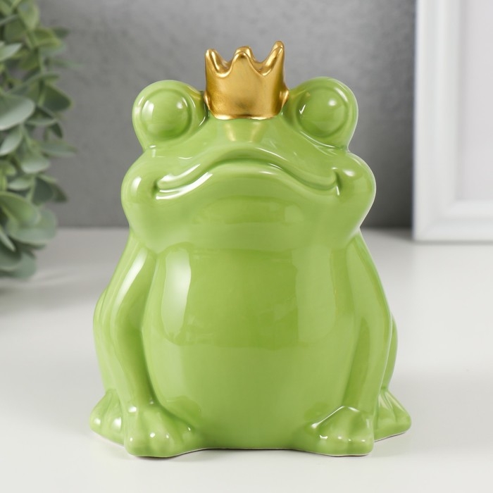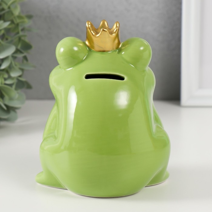 Копилка керамика "Зелёная лягушка в короне" 12х10,5х15 см