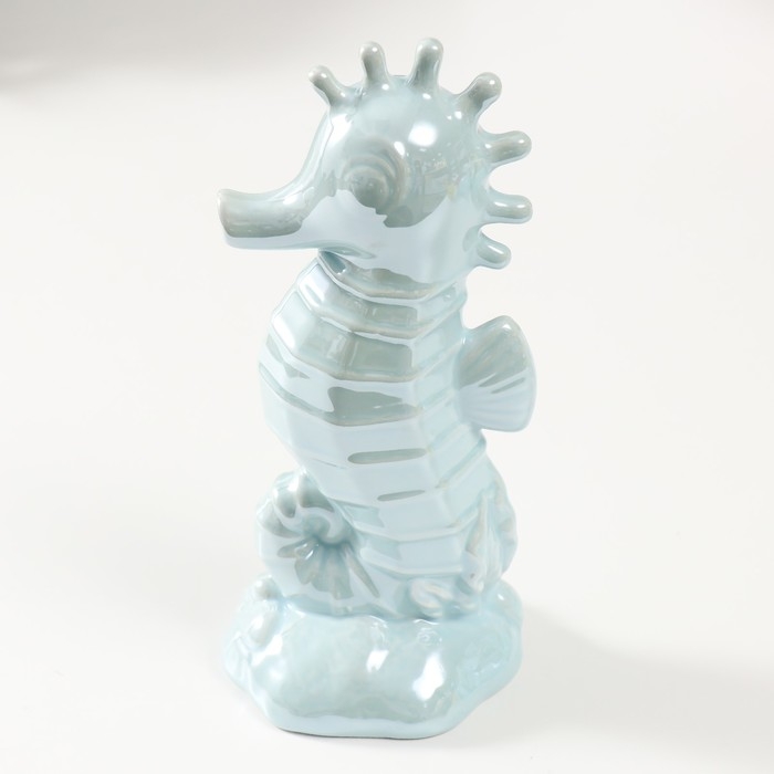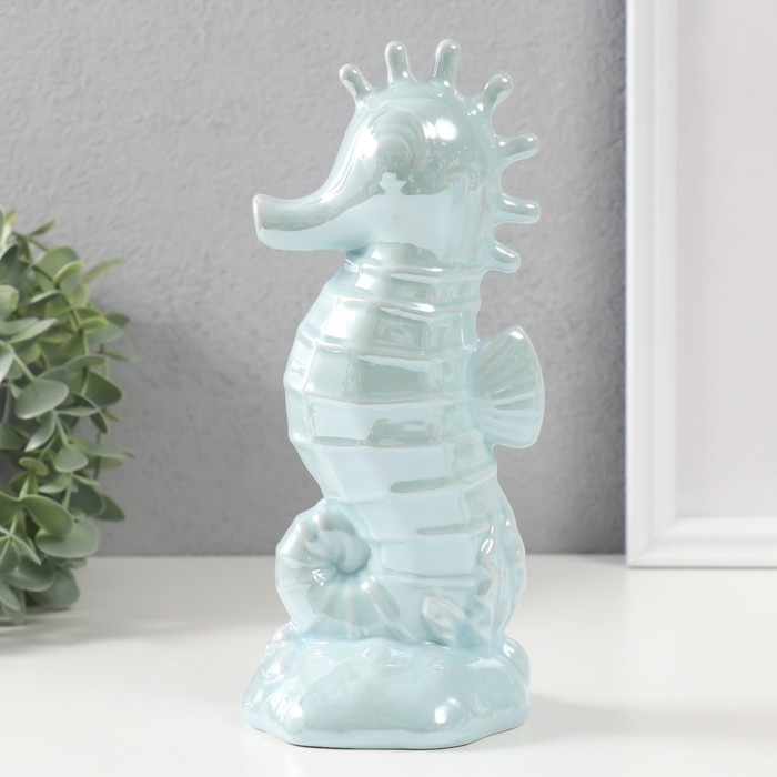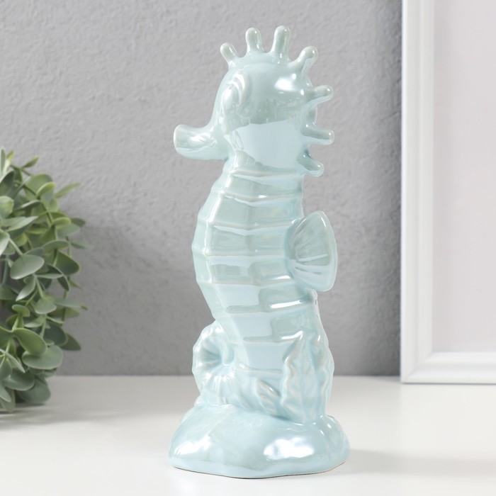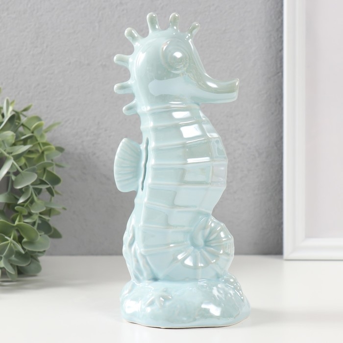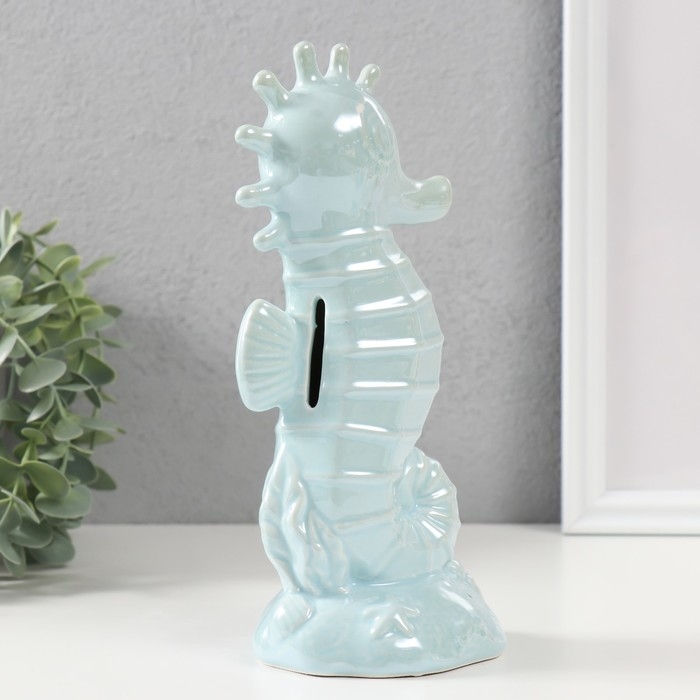 Копилка керамика "Морской конёк" голубой перламутр 9,5х8,2х21 см