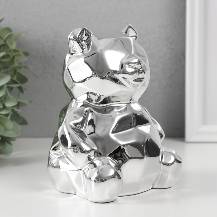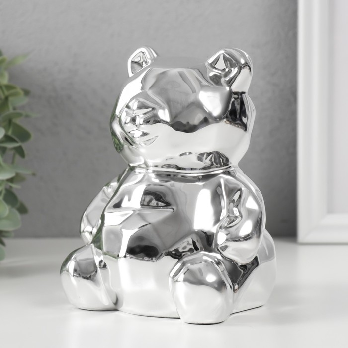 Копилка керамика "Медвежонок 3D грани" серебро 11х9,5х14,3 см