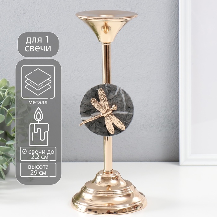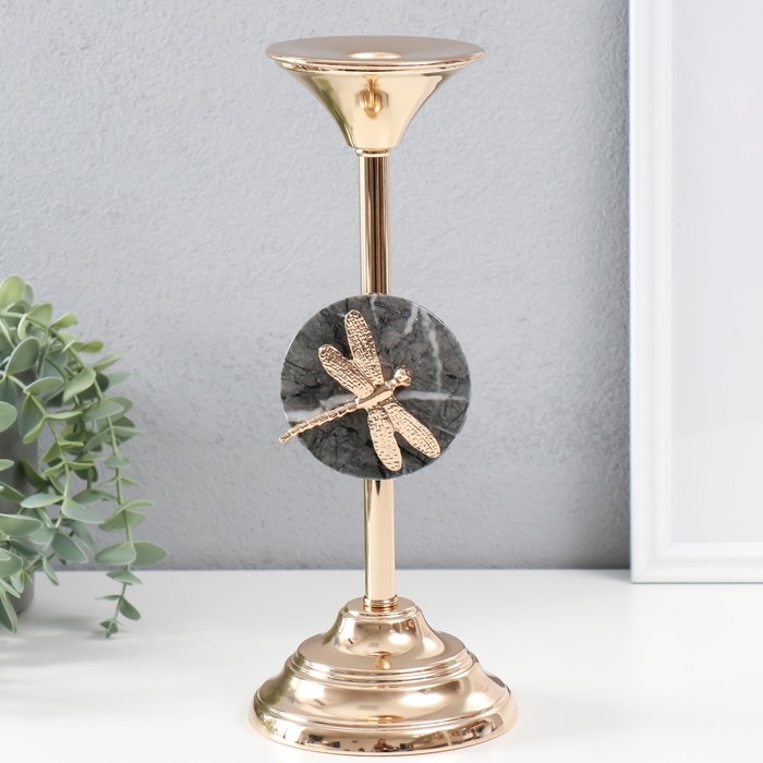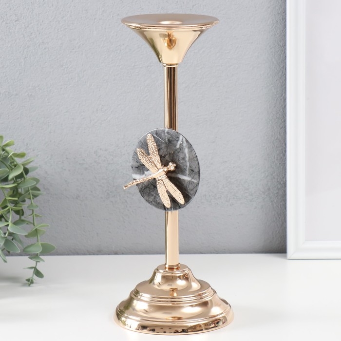 Подсвечник металл на 1 свечу d=2,2 см "Стрекоза" золото 11,5х11,5х29 см