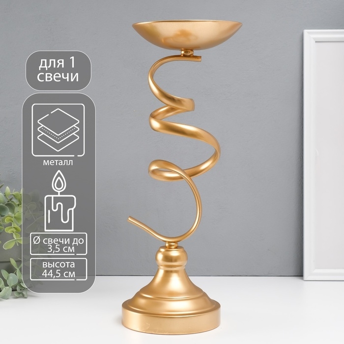 Подсвечник металл на 1 свечу d=3,5 см "Максима" золото 15х15х44,5 см