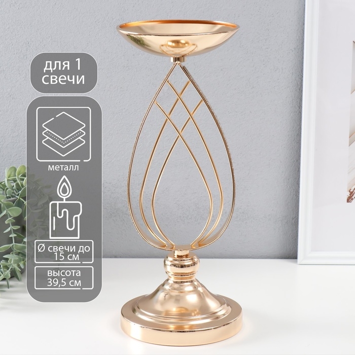 Подсвечник металл на 1 свечу d=15 см "Гратиана" золото 15х15х39,5 см