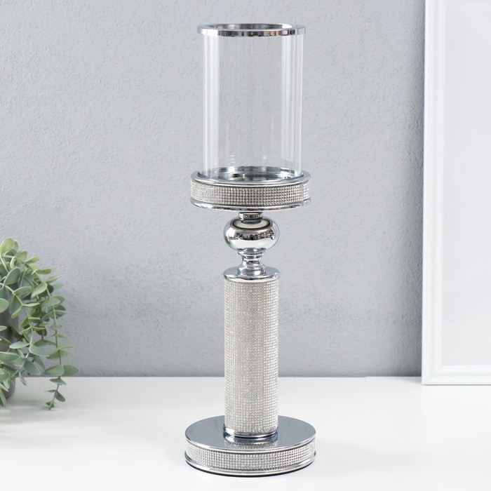 Подсвечник стекло, металл на 1 свечу "Дэниз" на магните d=8,5 см, серебро 11,8х11,8х39 см