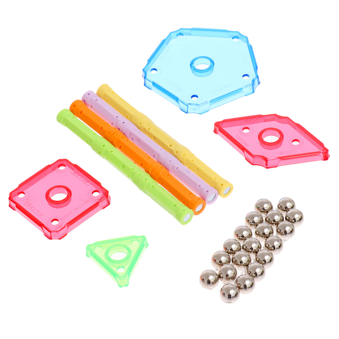 Магнитный конструктор — отличный тренажёр для развития пространственного мышления и образного восприятия. Ребёнок придумает любую геометрическую форму, а под действием силы притяжения элементы сами прикрепятся друг к другу. Достаточно проявить воображение — и из металлических шариков и разноцветных палочек получится собрать любые трёхмерные объекты: машины, здания и даже робототехнику.