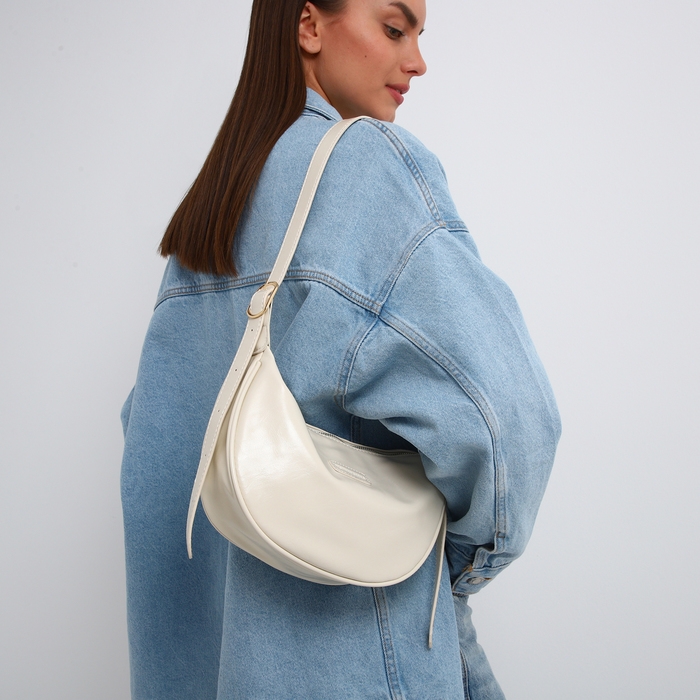 Сумка женская, багет, на молнии, цвет молочный