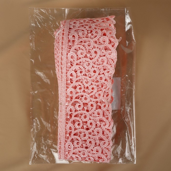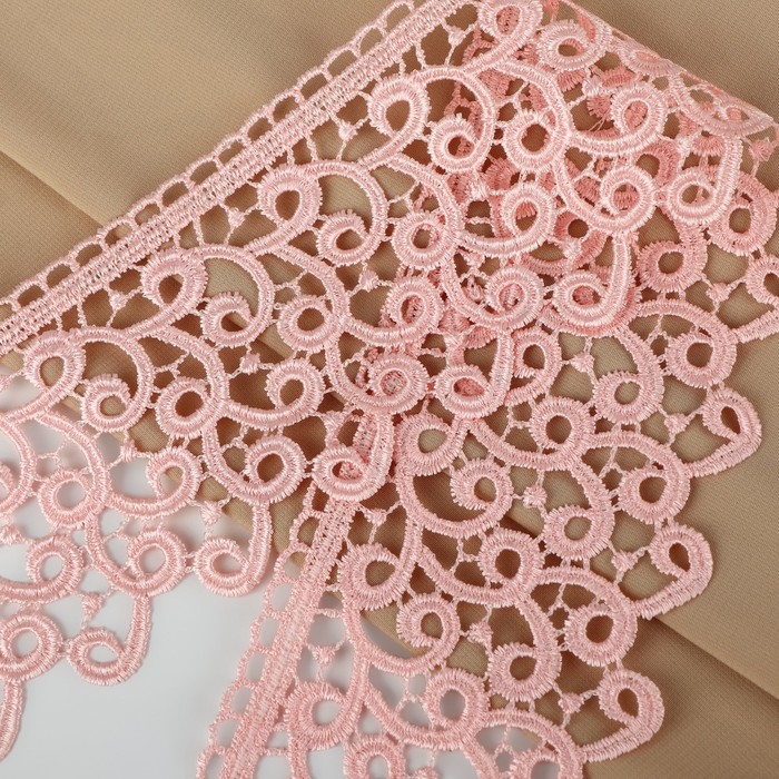 Кружево гипюровое, 78 мм × 11 ± 1 м, цвет нежно-розовый