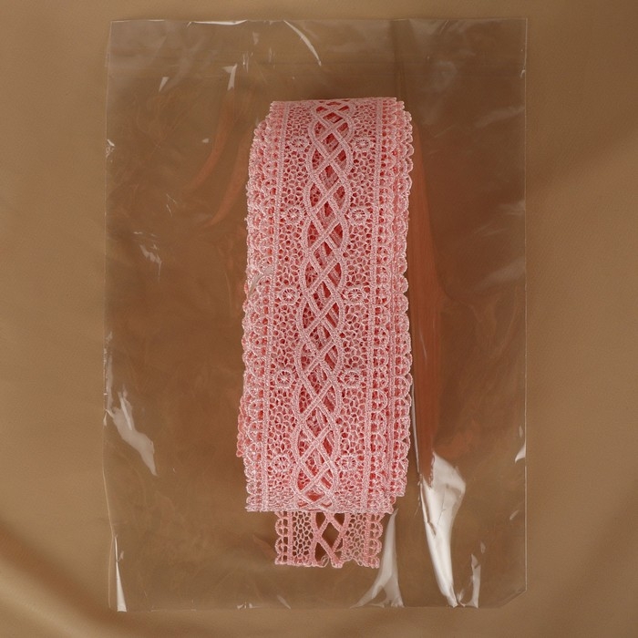 Кружево гипюровое, 40 мм × 11 ± 1 м, цвет нежно-розовый