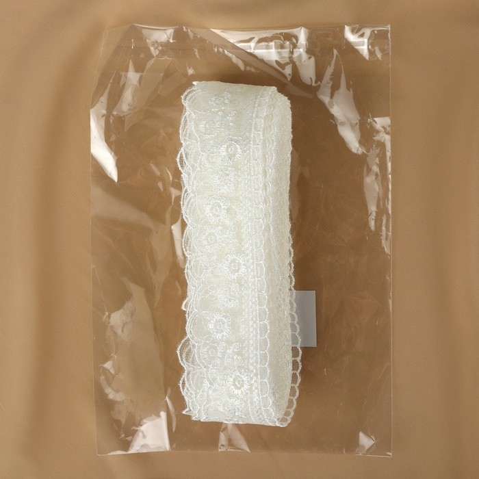 Кружево на сетке, 40 мм × 11 ± 1 м, цвет айвори