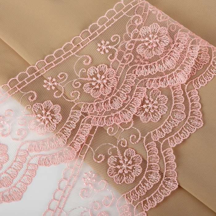 Кружево на сетке, 85 мм × 11 ± 1 м, цвет нежно-розовый