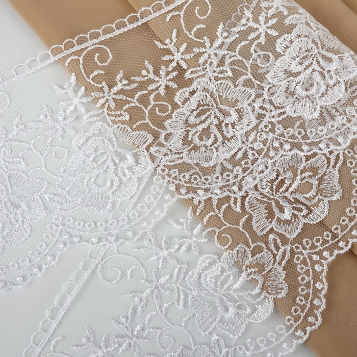 Кружево на сетке, 105 мм × 11 ± 1 м, цвет белый