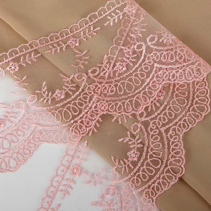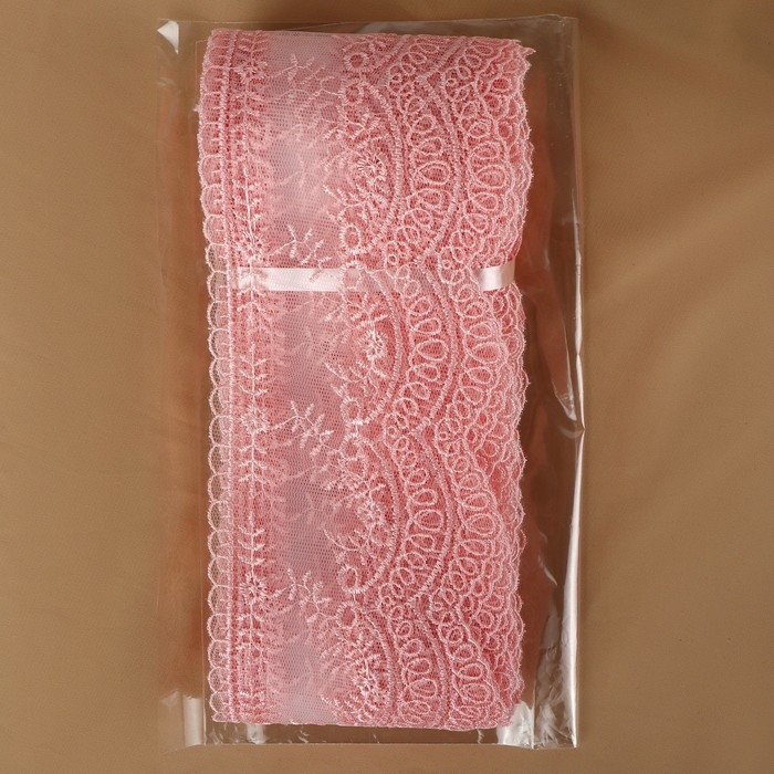 Кружево на сетке, 95 мм × 11 ± 1 м, цвет нежно-розовый