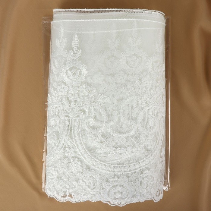 Кружево на сетке, 280 мм × 11 ± 1 м, цвет айвори