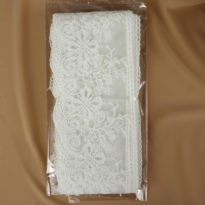Кружево на сетке, 280 мм × 11 ± 1 м, цвет айвори