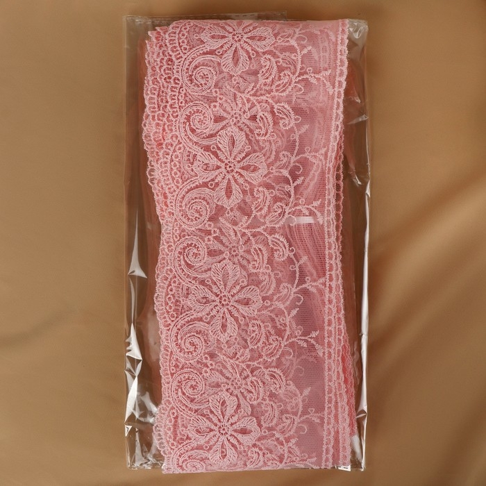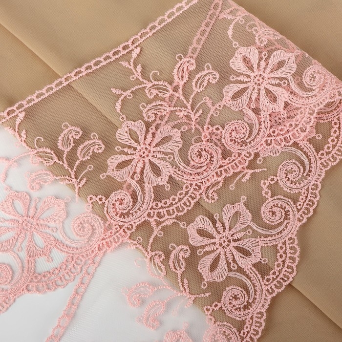 Кружево на сетке, 110 мм × 11 ± 1 м, цвет нежно-розовый