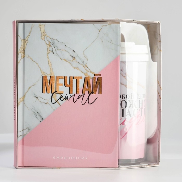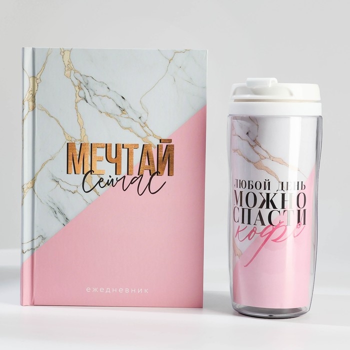 Подарочный набор: ежедневник А5, 80 л. и термостакан 350 мл. «Мечтай сейчас»
