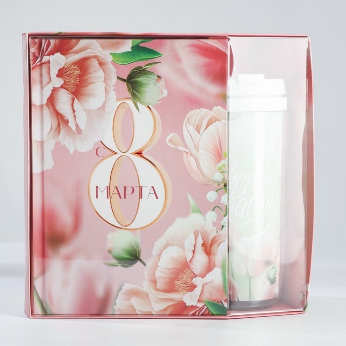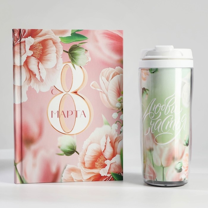 Подарочный набор ежедневник А5, 80 л. и термостакан 350 мл «С 8 марта»