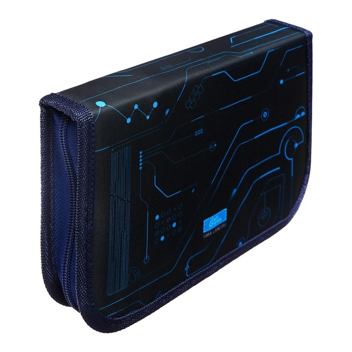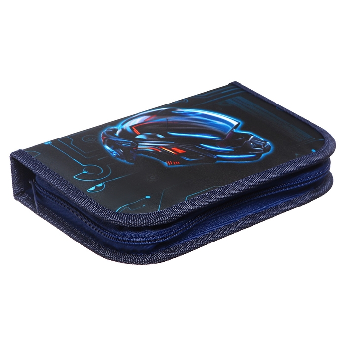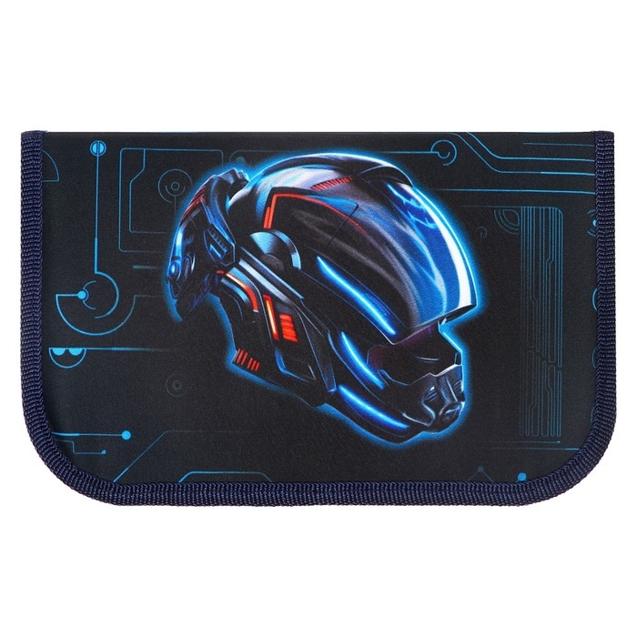Пенал 1 секция, 130 х 210 х 40 мм, 2 откидные планки, тканевый, Calligrata TOP, Content "Мото шлем"