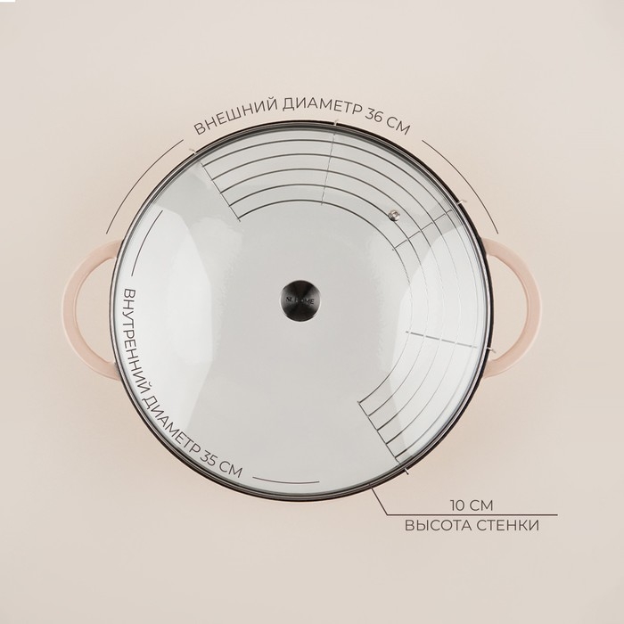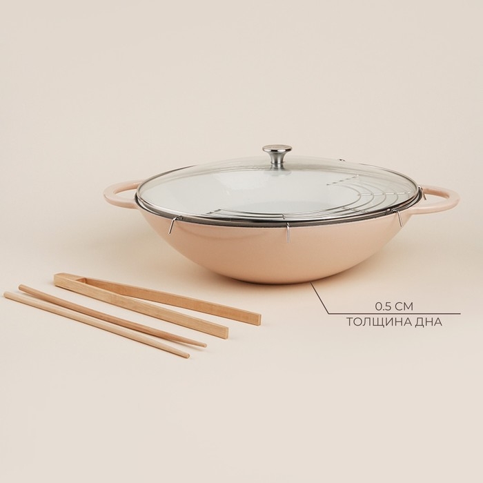 Сковорода-Вок чугунная с эмалированным покрытием SL Home, d=36 см, h=10 см, в комплекте с палочками, индукция, цвет бежевый