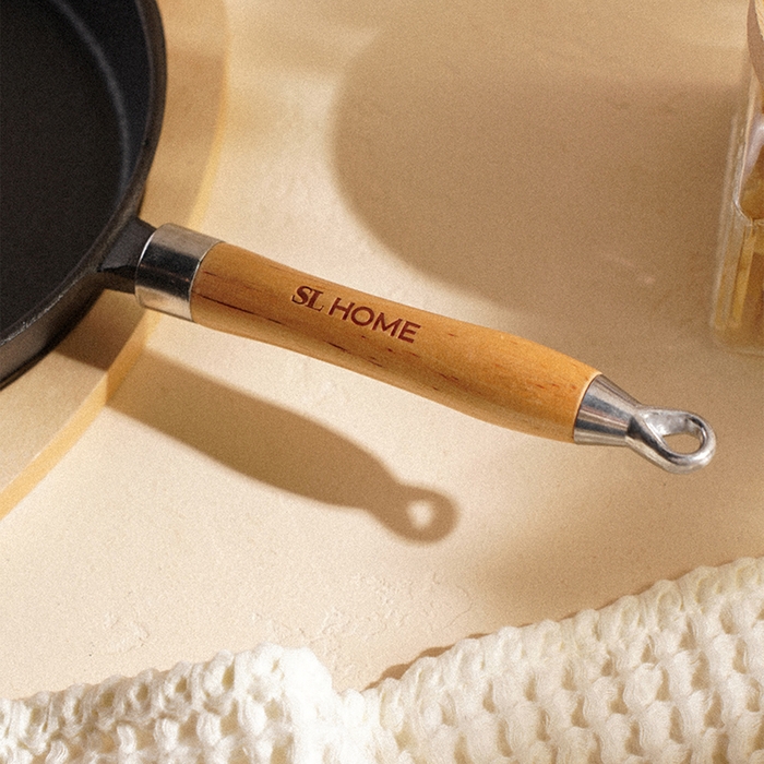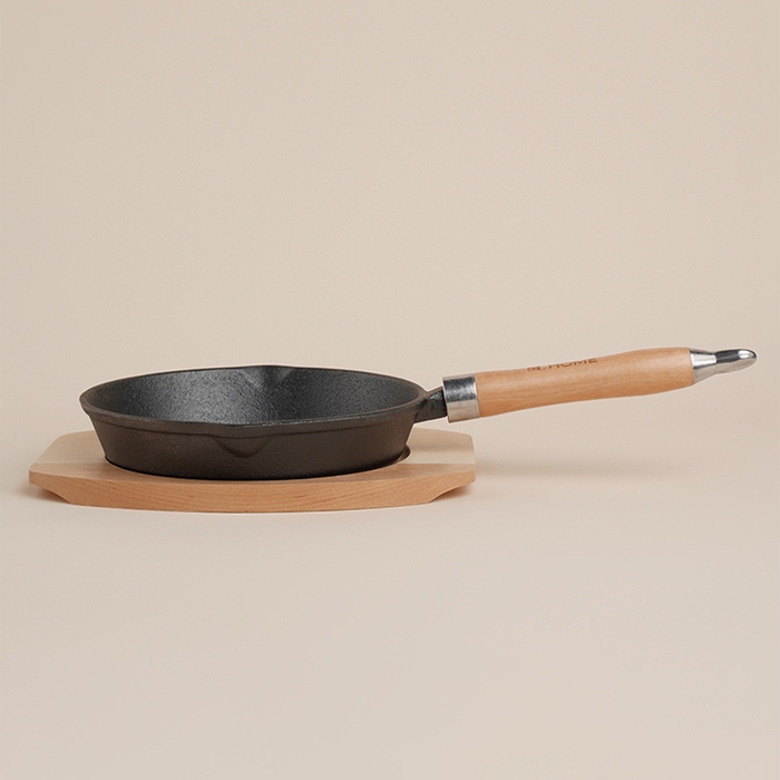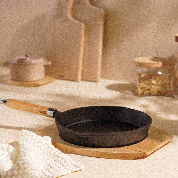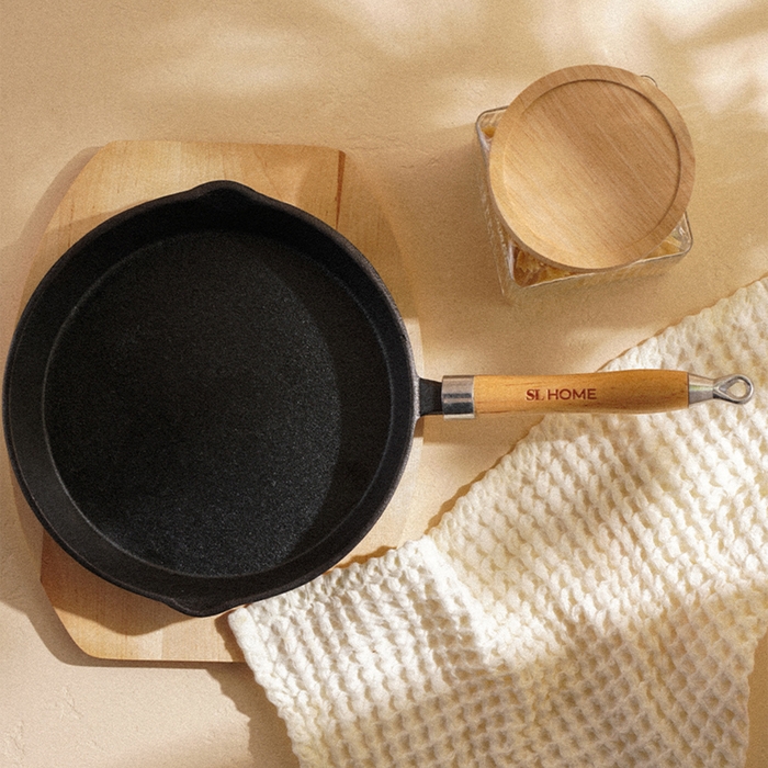 Сковорода чугунная на деревянной подставкем SL Home, d=25, h=4,4 см, индукция, цвет чёрный