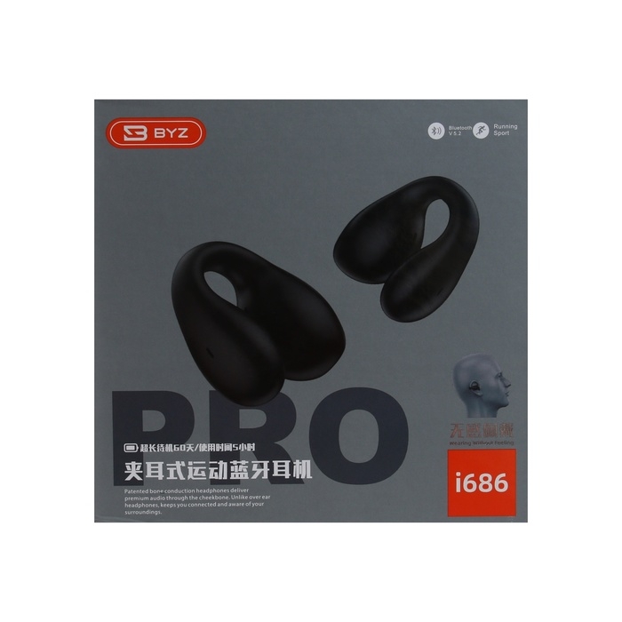 Наушники BYZ i686, беспроводные, вкладыши, микрофон, ВТ 5.2, 30/200 мАч, чёрные