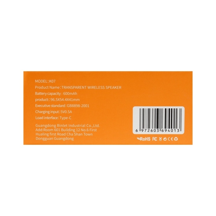Портативная колонка BYZ К07, 5 Вт, 600 мАч, ВТ 5.1, функция TWS, чёрная