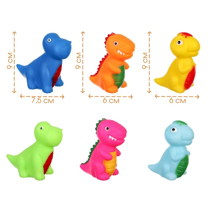 Набор резиновых игрушек для ванны «Динозавры», 6 шт, Крошка Я