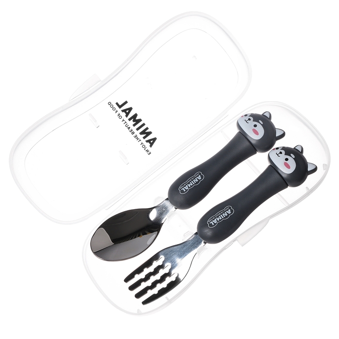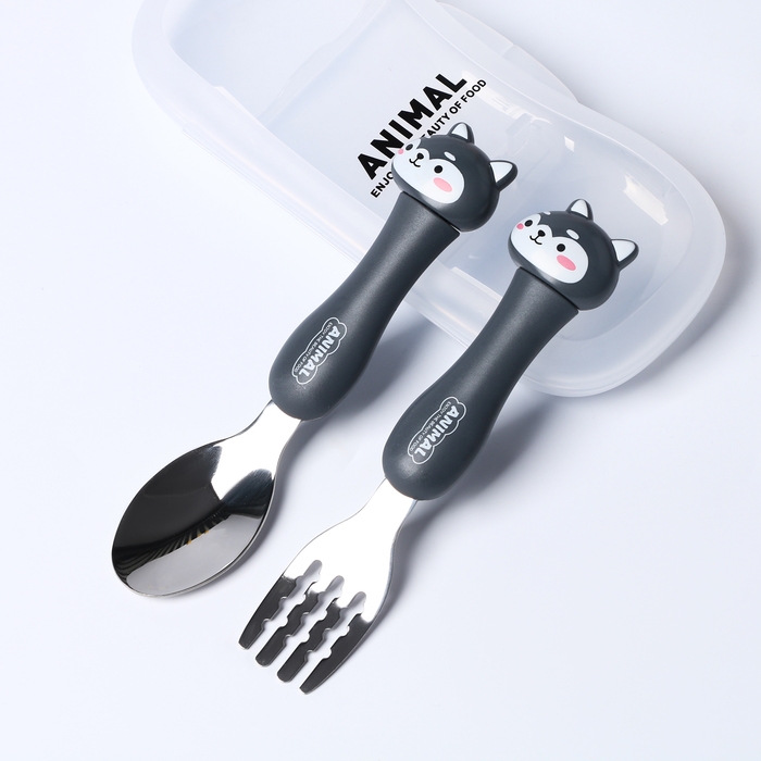 Набор детских столовых приборов в футляре «Щенята», вилка, ложка
