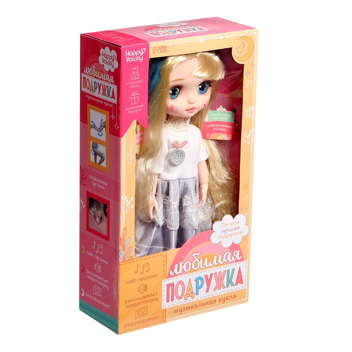 Интерактивная кукла «Любимая подружка» — это увлекательная игрушка для детей от 3 лет, которая оснащена звуковыми и световыми эффектами. Высота куклы составляет 40 см — это делает её удобной для игр и переноски. Кукла способствует развитию социальных навыков, воображения и творческого мышления. Она станет верным другом для вашего ребёнка и будет сопровождать его дома и в садике.