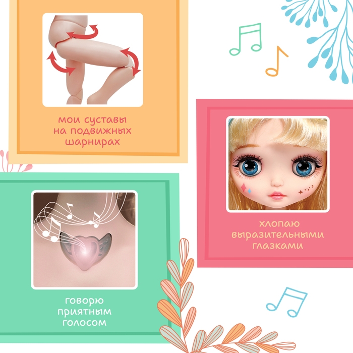 - Кукла изготовлена из долговечного и безопасного пластика и текстиля.