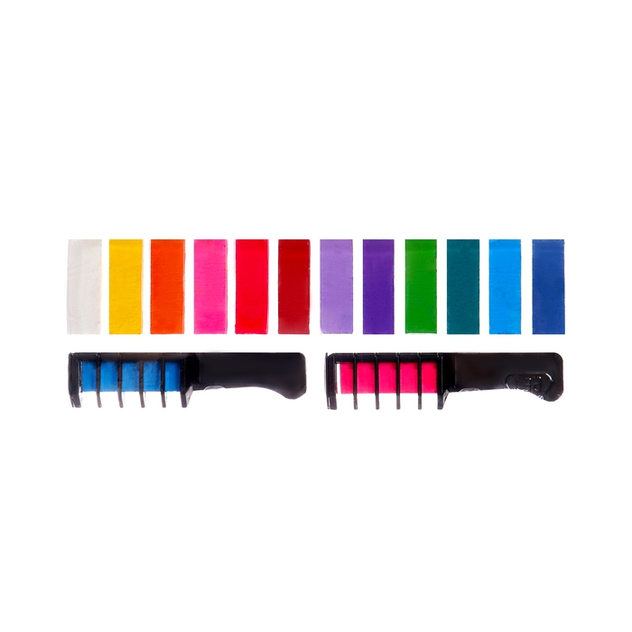 Мелки для волос с расческой, набор 14 цветов (2+12)