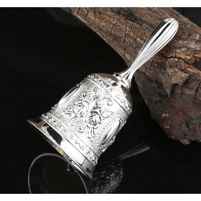 Изысканный колокольчик из металла с изящной гравировкой. Этот предмет станет прекрасным украшением вашего интерьера, добавит нотку элегантности и благородства.