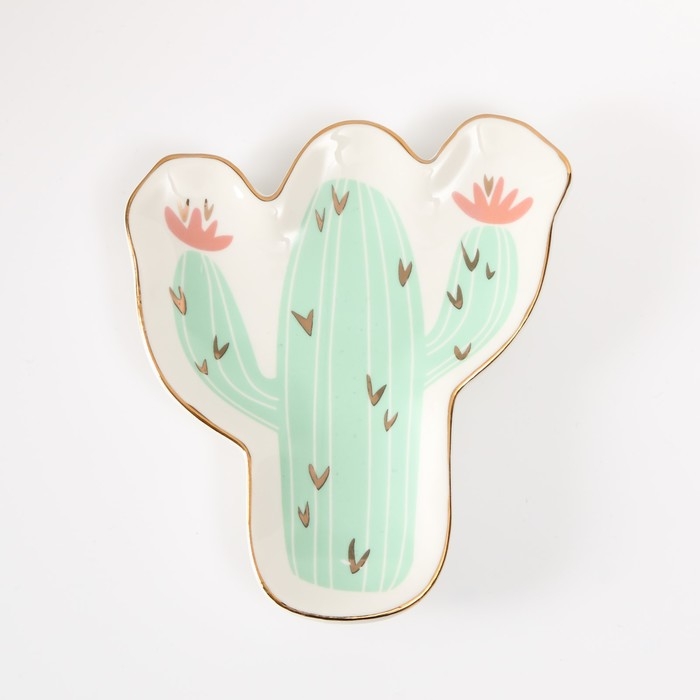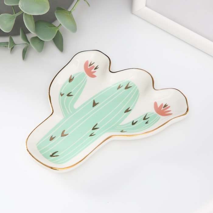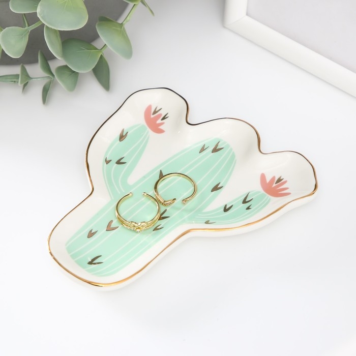 Сувенир керамика подставка под кольца "Кактус с цветами" 1,6х11х12 см