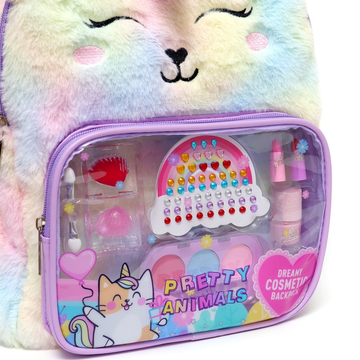 Этот креативный рюкзаковый набор не только внушает любовь к миру красоты, но и предоставляет возможность детям создавать свои уникальные образы, используя различные элементы макияжа и украшений.