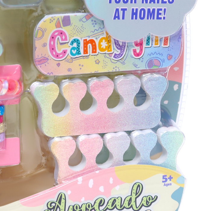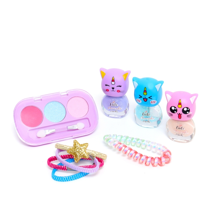 - Лак для ногтей (3 шт): Разнообразие цветов лака дает возможность детям создавать уникальные дизайны для своих ногтей, подчеркивая индивидуальность.