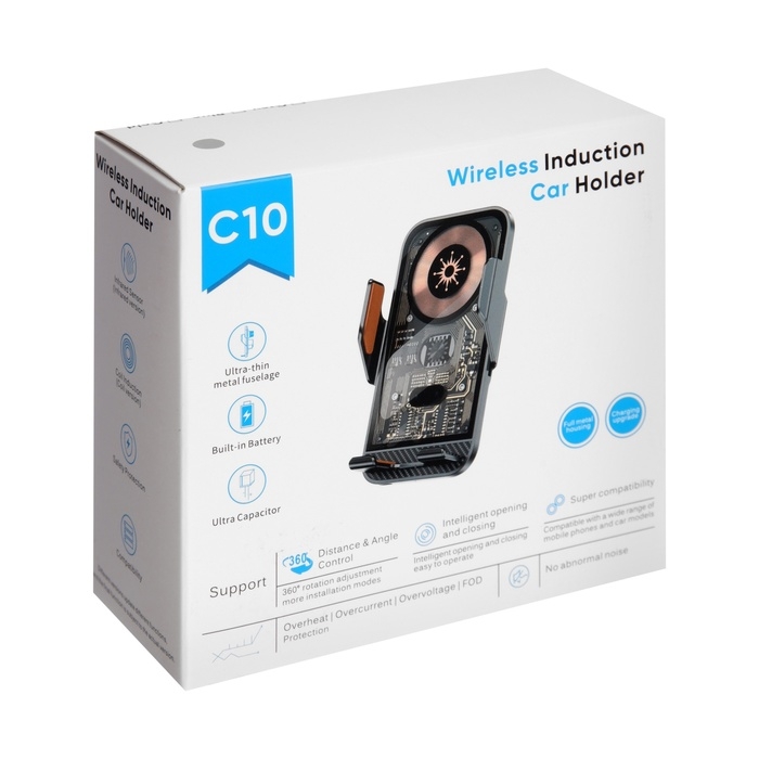 Автомобильный держатель для телефона C10, беспроводная зарядка, автозахват, 15 W, серый