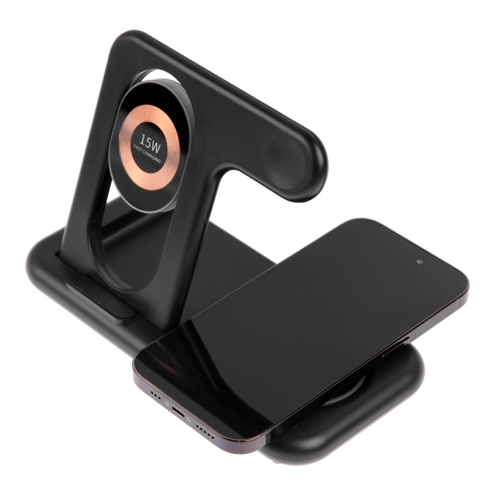 Беспроводное зарядное устройство 3 в 1 Y36, 15 W, складная, подсветка, USB, Type-C, чёрная