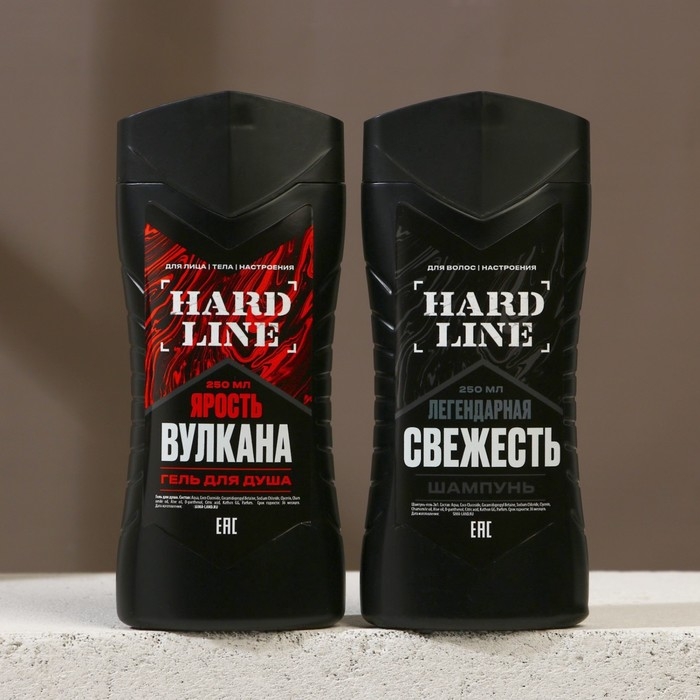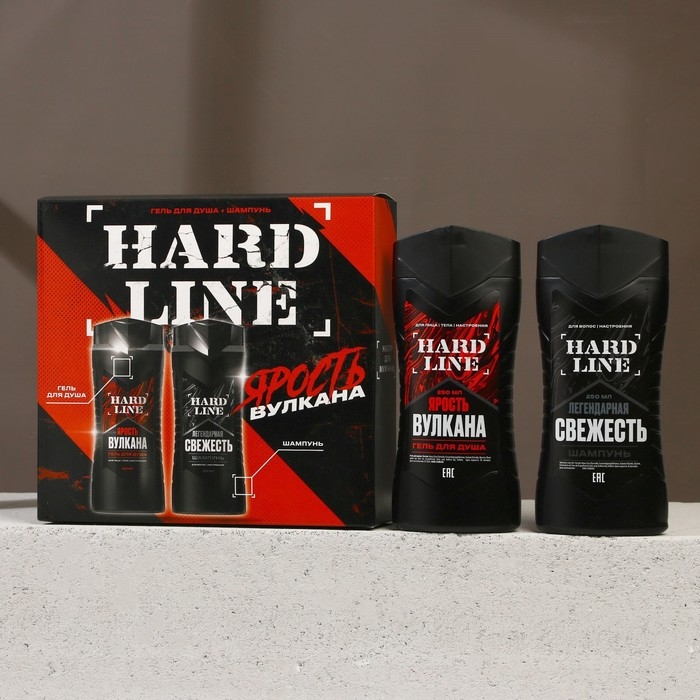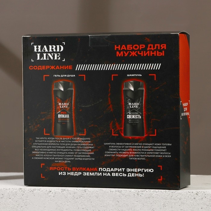 Подарочный набор косметики «Ярость вулкана», гель для душа 250 мл и шампунь для волос 250 мл, HARD LINE