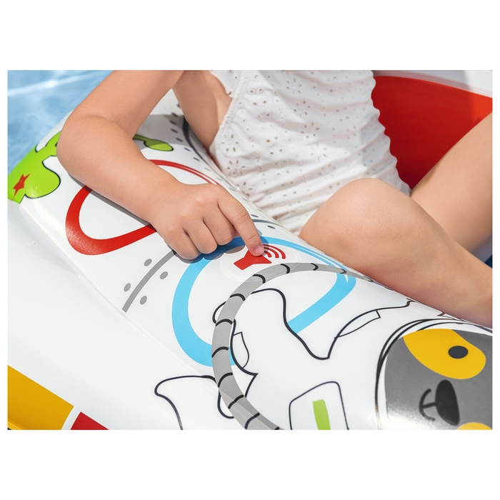 Надувная лодочка предназначена для игр в бассейне, на реке или на море. Главная особенность модели — звуковые эффекты, которые сделают времяпрепровождение на воде веселее.