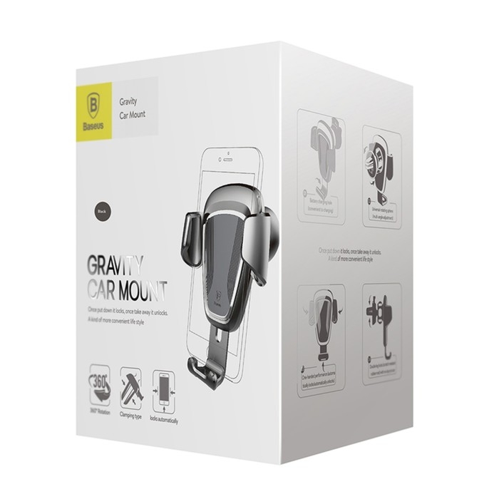 Автомобильный держатель Baseus Gravity, 63-88мм, черный, на воздуховод
