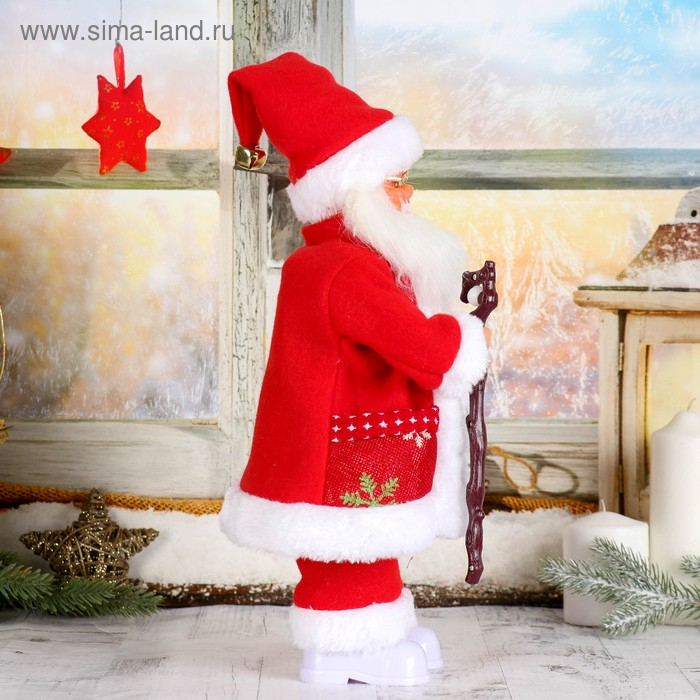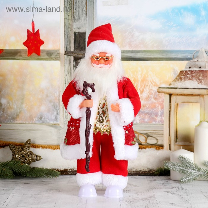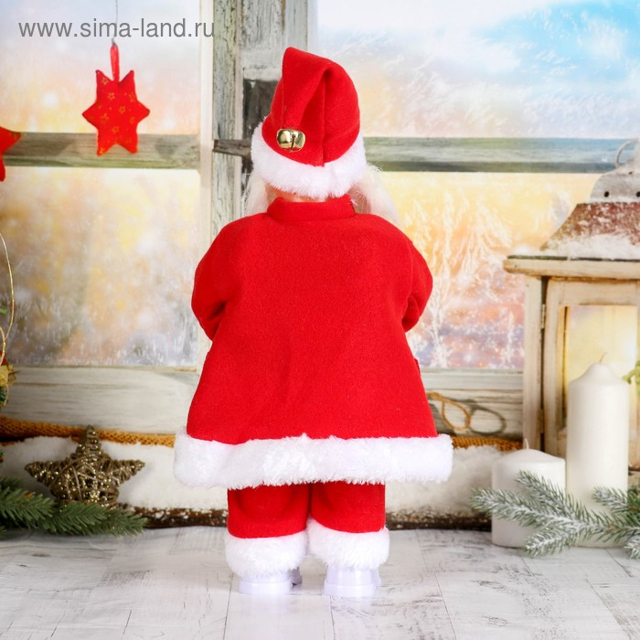 Дед Мороз "Красная шубка, в очках, в валенках" двигается, с подсветкой, 36 см