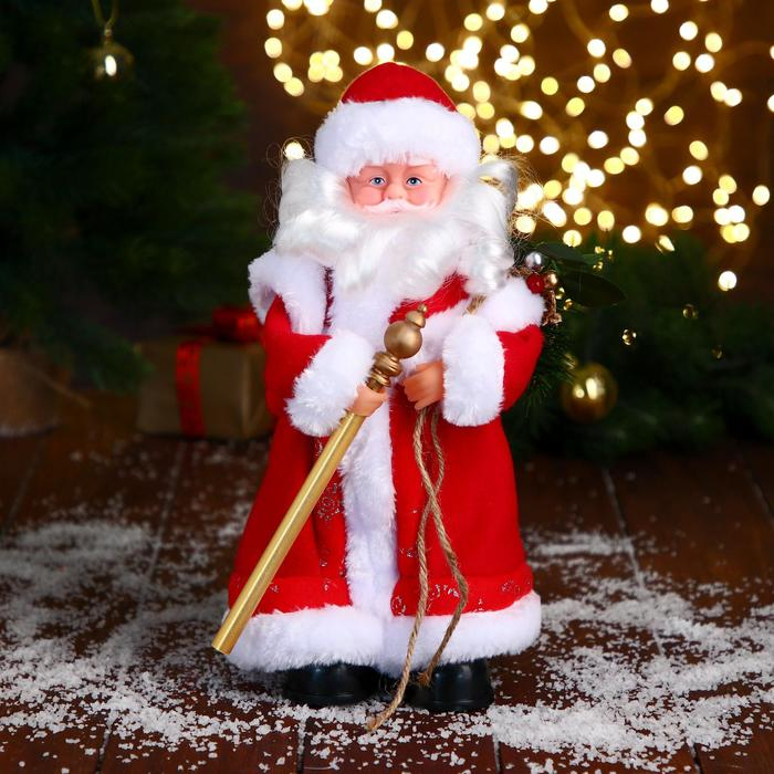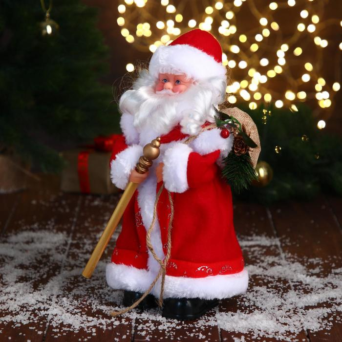 Дед Мороз "В красной шубе, с посохом" 27 см