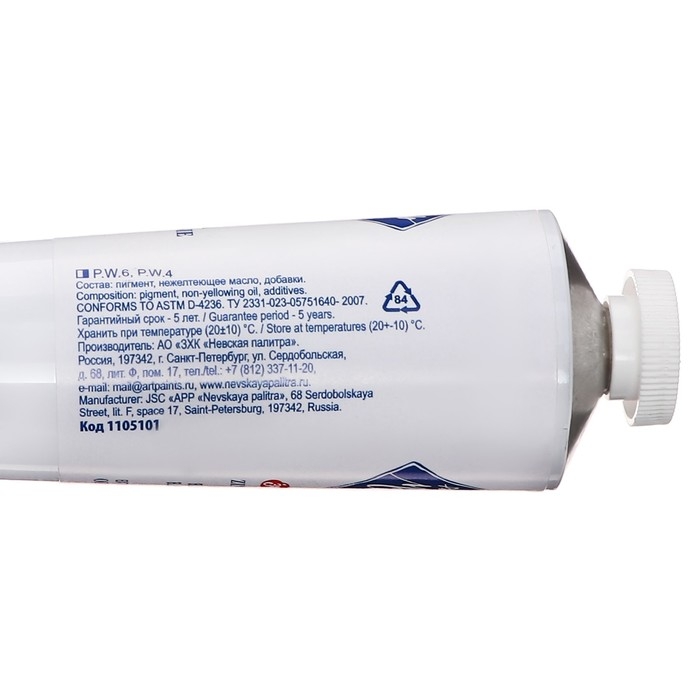 Краска масляная в тубе 120 мл, ЗХК «Ладога», белила титановые