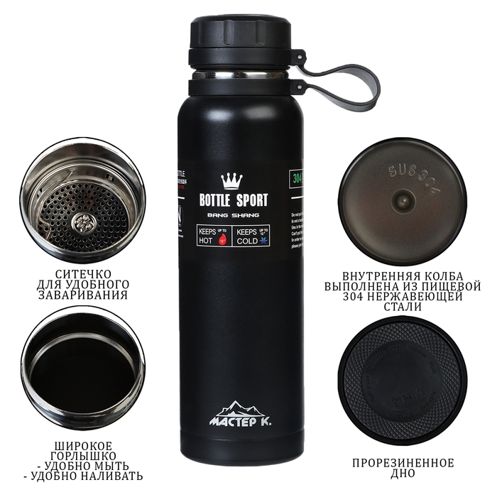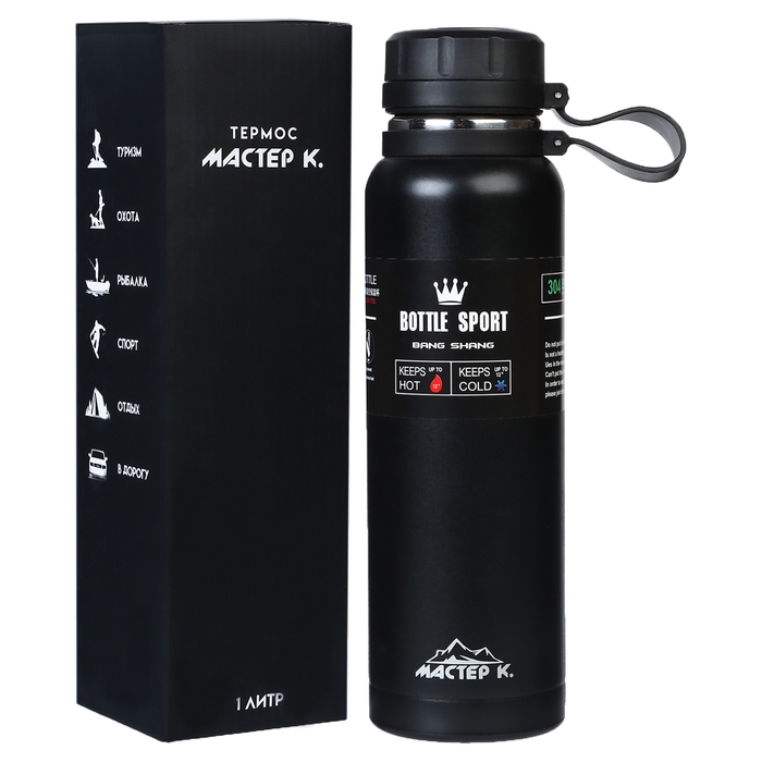 Термос, серия: Warm, "Мастер К", 1 л, сохраняет тепло до 8 ч, черный