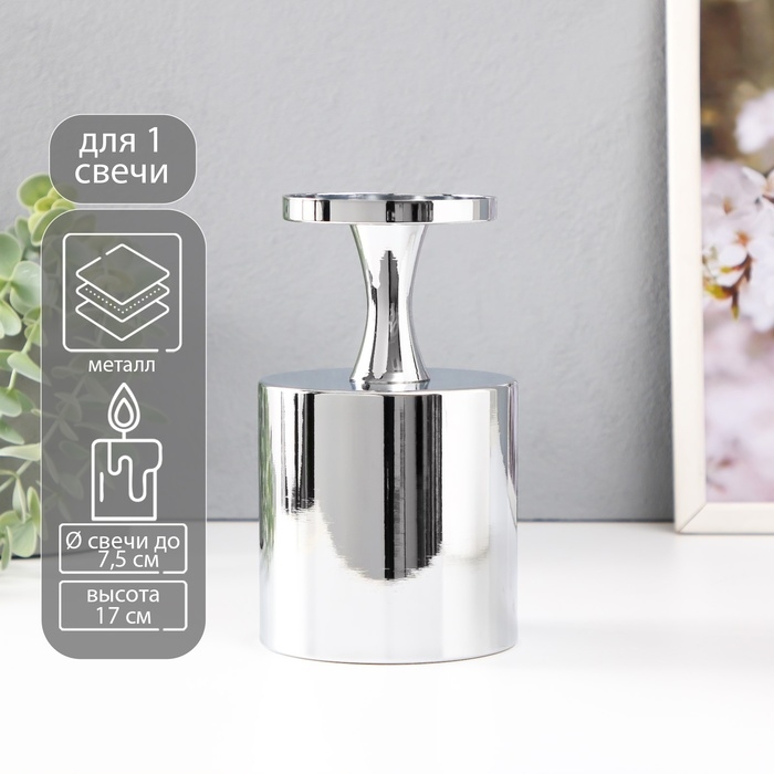 Подсвечник металл на 1 свечу d=7.5 см "Алессио" серебро 9,5х9,5х17 см