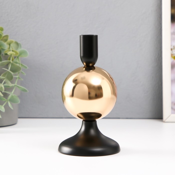 Подсвечник металл на 1 свечу d=2 см "Дельфуза. Золотой шар" 9х9х17 см